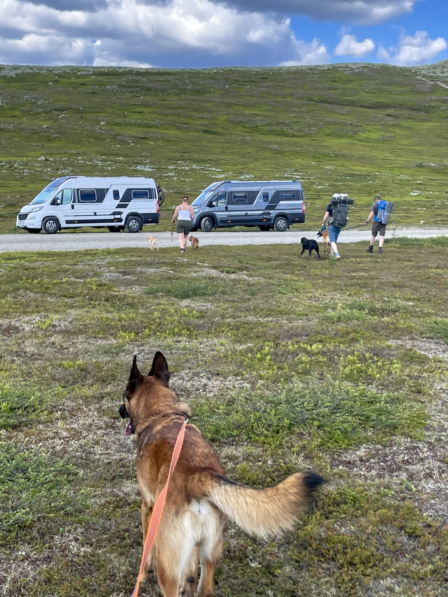 Quest'estate hanno totalizzato oltre 60 pernottamenti e percorso circa 5000 chilometri. "Siamo stati in viaggio per cinque settimane consecutive al massimo. È fondamentale preparare i bagagli in modo strategico", afferma Ewa. Il van è registrato con un peso totale di 4500 chilogrammi, il che garantisce un'ampia capacità di carico, necessaria per trasportare due cani di 30 chilogrammi ciascuno, due grandi zaini da trekking e il cibo per i membri della famiglia a due e quattro zampe. Gli zaini vengono preparati prima della partenza e sono così grandi che hanno uno spazio dedicato intorno alla dinette. "Pesano circa 25 chilogrammi ciascuno e contengono cibo, una tenda e altre cose necessarie. Abbiamo rimosso i cuscini dal divano e fissato saldamente gli zaini con le cinture. Quando troviamo un posto adatto per campeggiare, prendiamo gli zaini e la tenda e partiamo per escursioni a piedi. "Siamo fuori per diversi giorni, a volte fino a una settimana. Si tratta di circa 10 chilometri di escursioni al giorno", dice Ewa.
