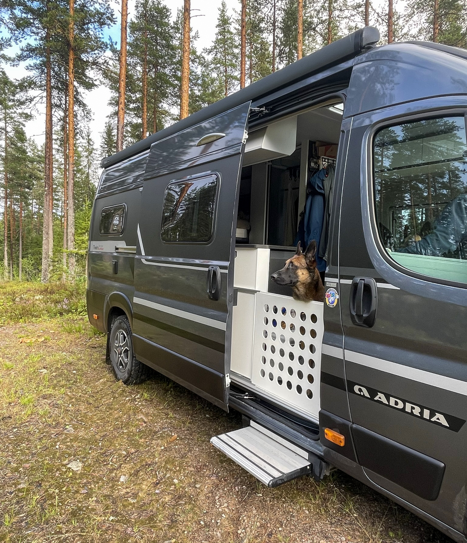 Ci sono diverse ragioni per cui hanno scelto un Adria Twin Supreme 640 SGX. Una ragione è la sua manovrabilità su strade strette in terreni boschivi. "A volte ci ritroviamo su strade peggiori del previsto, come quella volta al Three-Country Cairn quando abbiamo incontrato un veicolo cingolato dell'esercito norvegese. Grazie alle dimensioni compatte, siamo riusciti a raggiungere il punto di partenza, ma è stata una bella sfida", ride Ewa. Sotto il letto basculante sul retro, hanno costruito un posto sicuro per i cani. "Abbiamo una cuccia per cani costruita su misura sul pavimento, pratica e sicura. Il letto non può essere abbassato completamente, ma abbastanza da permetterci di avere un posto letto comodo e accessibile. A volte vanno a trovare amici che non hanno spazio, sono allergici o non amano molto i cani. In questo caso, il van funge anche da camera per gli ospiti. "Ci permette di essere molto flessibili. "Per noi che amiamo una vita attiva con gli animali e la natura, è assolutamente perfetto", conclude Ewa Jonsson.