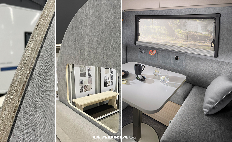 NB: Il PES è utilizzato anche nell'Adria Supertwin. Questo conferisce immediatamente a questo autocaravan un aspetto più accogliente. I rumori sono smorzati e contribuisce anche all'isolamento, mantenendo il calore interno per più tempo.